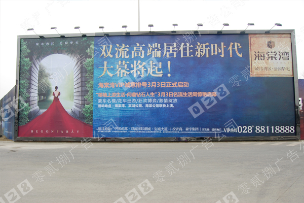 樓頂戶外廣告牌制作價格 樓頂廣告牌制作價格情況要按照實際的情況做決定,有的工作制作形勢很危險和很困難的話,樓頂廣告牌制作價格就會相應(yīng)的高些,如何樓頂廣告牌小而且制作簡單就會價格低一些。下面跟著我們零貳捌成都廣告公司一起來了解一下樓頂廣告牌制作價格的情況吧: