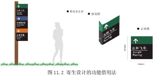 盡量利用主體本身具有的功能去實(shí)現(xiàn)標(biāo)識導(dǎo)向系統(tǒng)的功能,這種方法也是大力提倡的。例如原有主體具有的保護(hù)功能,這樣的話也能夠減少標(biāo)識導(dǎo)向系統(tǒng)本身的成本。但此種寄生借用法在使用前需要提前對標(biāo)識導(dǎo)向系統(tǒng)即被宿主的功能結(jié)構(gòu)有著清醒的認(rèn)識,再進(jìn)行重新設(shè)計(jì)。如果設(shè)計(jì)方法得當(dāng),甚至可能會使寄生體產(chǎn)生意想不到的效果(圖 11.2)。