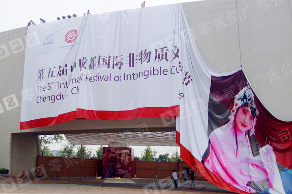 戶外大型墻體噴繪制作廠家 噴繪相信對于很多人來說都不陌生,在我們生活的周圍隨處可見,例如街道邊圍墻廣告噴繪,商場墻體廣告噴繪,商家噴繪店招等,這些都是屬于噴繪制作,這些很多都是屬于小篇幅的廣告噴繪畫面制作,制作安裝都是非常簡單的。如果制作幾十米長寬的大型廣告噴繪畫面需要選擇什么材質(zhì),應(yīng)該怎樣進行安裝呢?下面我們擁有豐富經(jīng)驗的零貳捌成都廣告制作公司來為大家講解一下: