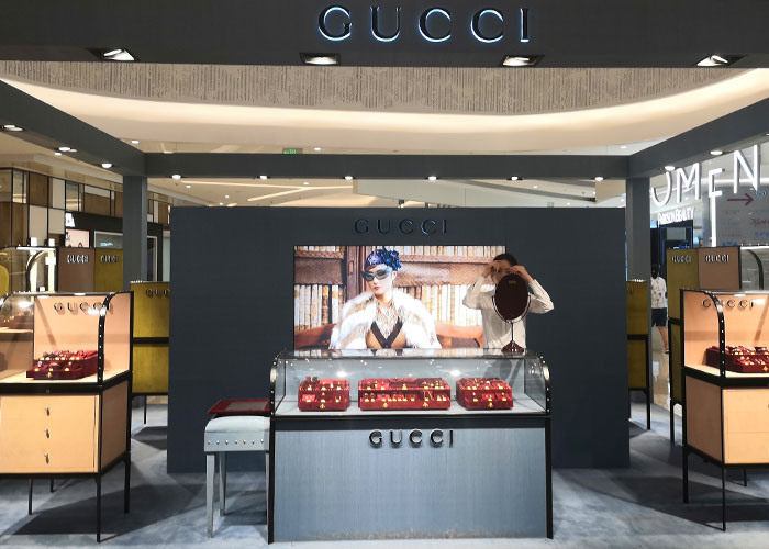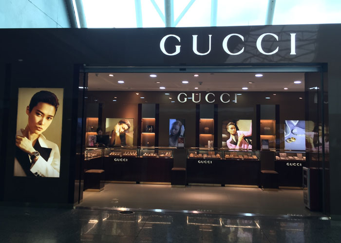 GUCCI品牌時(shí)裝一向以高檔、豪華、性感而聞名于世,以“身份與財(cái)富之象征”品牌形象成為富有上流社會(huì)的消費(fèi)寵兒,一向被商界人士垂青,時(shí)尚又不失高雅。古馳現(xiàn)在是意大利時(shí)裝集團(tuán)。古馳--永恒而經(jīng)典并深受明星們的青睞,品牌靈感源自演員,公主和名媛等杰出女性。如今其創(chuàng)作總監(jiān):弗里達(dá)·賈娜妮(Frida Giannini),將這一歷史悠久的品牌推向了全新的高度。其產(chǎn)品包括:經(jīng)典鞋履,奢華手袋,珠寶手表等。下面就跟著我們四川零貳捌成都店面門(mén)頭招牌設(shè)計(jì)公司一起來(lái)欣賞全球奢侈品品牌之一古馳的店面門(mén)頭招牌設(shè)計(jì):