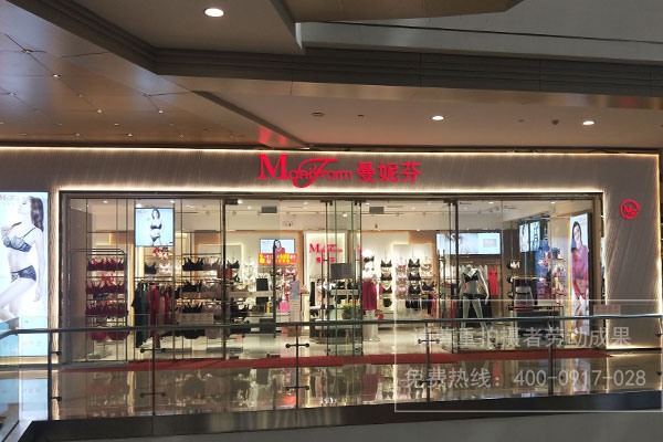 曼妮芬內(nèi)衣連鎖店店面招牌不銹鋼圍邊發(fā)光字制作安裝
