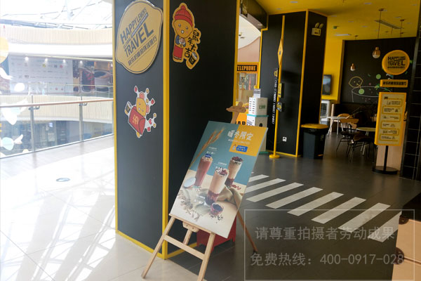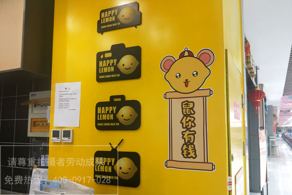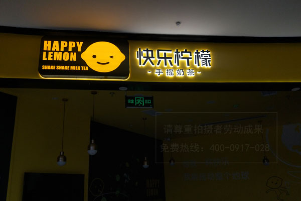 并且門頭不合適做的太花、太亂,用一個主色彩把本人的品牌嵌入進(jìn)去即可,如快樂檸檬奶茶店主色調(diào)采用的就是檸檬黃,如今的群眾審美傾向簡約化。門頭還有告知消費者的作用,要讓人看到的第一眼就曉得這是一家飲品店,所以在設(shè)計時最好有飲品的元素。