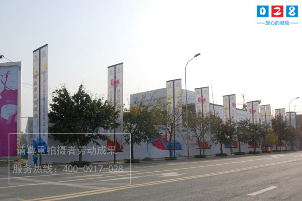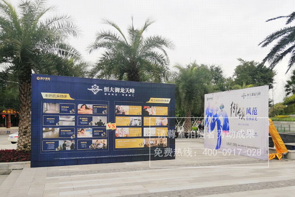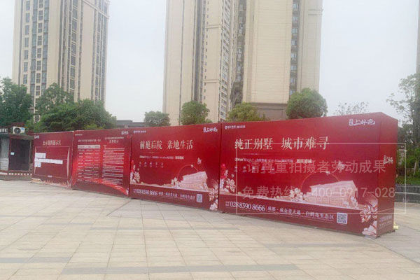 在樓盤施工地利用施工圍墻圍擋,在圍墻圍擋上安裝噴繪廣告畫面,廣告內(nèi)容主要也是樓盤名稱、樓盤標識以及樓盤建設好后的效果圖、預設場景或工藝廣告等。目前在提倡綠色環(huán)保的情況下綠植圍墻圍擋也是樓盤戶外宣傳廣告的一種重要形式,采用仿真草坪、仿真花等素材打造綠植墻,在墻面安裝樓盤名稱標識字或采用背膠裱KT板等形式制作各種制度牌、宣傳公益廣告等。