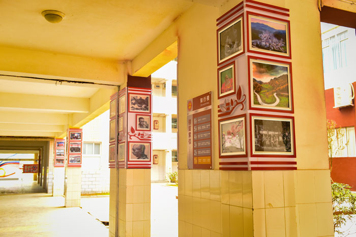 在校內最先盡收眼底的會是戶外文化墻設計,有領導干部關注、有老師學生活動方案,根據(jù)獨特的顏色,小朋友們在校園里的輕輕松松開心的學習生活和多種多樣的課余時間,也突顯了院校教師在工作之余重視學習培訓,不斷完善自身的開拓精神。校園內教學大樓過道、走廊、課室內墻面上懸架頗具靈氣設計方案的古詩文或名人肖像或名言名句,“字畫木棧道”布局老師學生著作,紀錄學員書法藝術與美術繪畫的造就,為校園內增加詩香氣場;每一個班集體都是有詩香柜,根據(jù)“班集體圖書角”和教室布置,建立“詩香班集體”。班集體教室黑板為學員著作的陣營,讓院校的每一個角落里都能嗅到詩香,讓她們每日在那樣的閱讀文章中日常生活。校園內醒目處布局頗具歷史人文氣場的宣傳語,讓學員在靜態(tài)數(shù)據(jù)的學校文化中閱讀經典,閱讀文章觀念,閱讀文章精神實質。使學員能情景交融,沉浸在濃厚的詩香氣氛中。