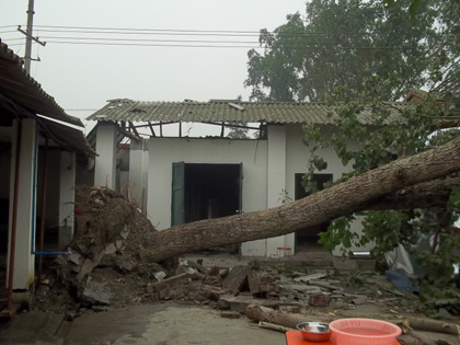 2011年7月23日上午,成都遭遇特大暴雨襲擊,雙流縣黃水鎮(zhèn)遭遇7級(jí)大風(fēng)暴雨,并伴有冰雹。在這場(chǎng)天災(zāi)中,當(dāng)?shù)厝嗣裨馐芰司薮蟮纳拓?cái)產(chǎn)。