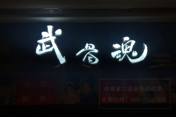 3.不銹鋼板或鋁板與丙烯酸板的組合,內(nèi)置LED光源,產(chǎn)生三維發(fā)光效果,即三維發(fā)光字符。