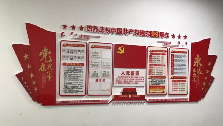 針對信心與堅定不移也是以馬列主義執(zhí)政黨,社會主義社會我國的精神財富為前行的運勢而勤奮,切勿聽之任之,掉心輕心,它是大家對我國的一種確信,也是價值觀念的認(rèn)同,大家我黨不但要人牢筑政冶生命,也要擔(dān)負(fù)新重任,踏上新征程,自然文化墻的喻意便是在告知大家,擁有堅定不移的人生價值觀,價值觀念的定盤星,便是大家昂起精神實質(zhì)錚錚鐵骨,保衛(wèi)祖國的信念。
