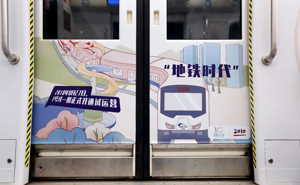 推出的“城市動(dòng)脈”號(hào)主題列車,以“蓉耀十年夢,軌道新生活”為主題。全車通過手繪畫的形式,在車頂、車底、車門、看板區(qū)域。將十年間成都地鐵發(fā)展大事件、暖心感人故事、懷舊老照片、祝福話語逐一呈現(xiàn)。