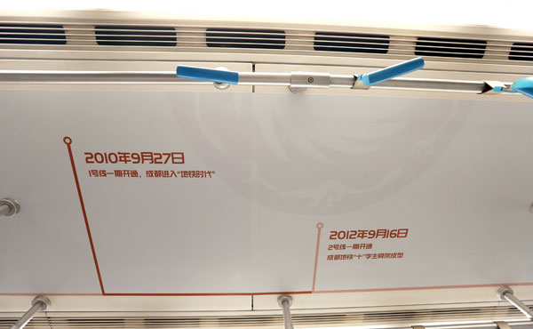 “城市動(dòng)脈號(hào)”主題列車正是十年前1號(hào)線開通時(shí)的首發(fā)車——“106次”列車。十年前,它滿載全市人們的期盼,邁出了成都跨入“地鐵時(shí)代”的第一步,十年后,它又承載著所有人的祝福。