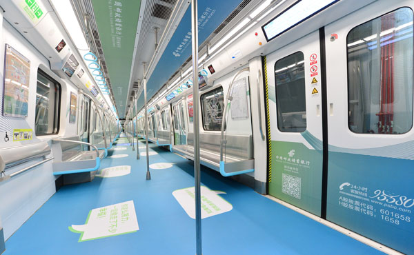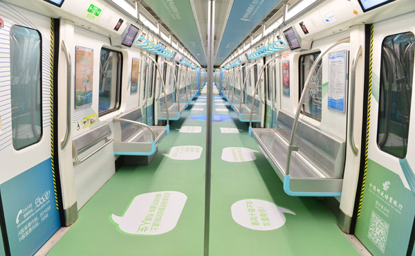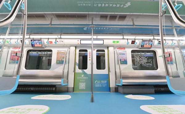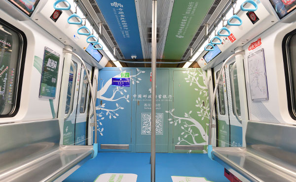 郵儲銀行四川省分行策劃設(shè)計的“郵儲銀行號”地鐵專列,在成都地鐵7號線正式起航。