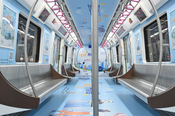 成都地鐵3號(hào)線“摩捷出行”主題專列開跑啦!列車以“安逸成都,公園城市,快樂出行”為主題,畫面呈現(xiàn)了成都豐富的特色建筑以及國(guó)寶熊貓等。列車上的成都“摩捷出行”畫卷,帶著安逸成都、快樂出行,從低碳環(huán)保美好成都出發(fā),駛向快捷自由的全新多元化出行。
