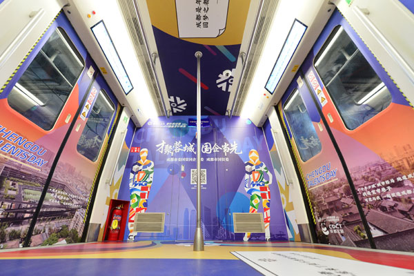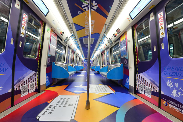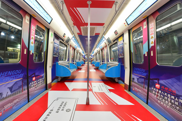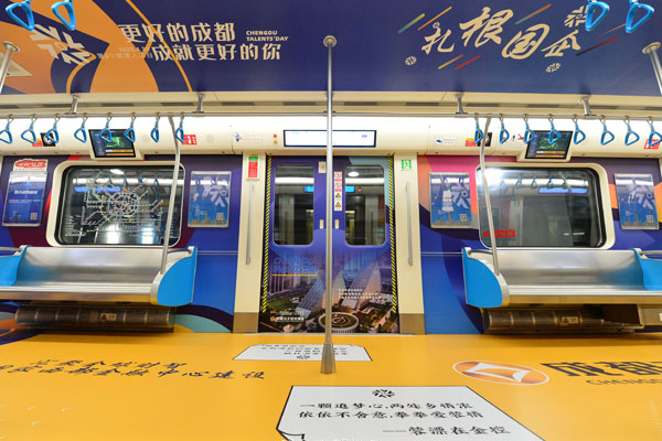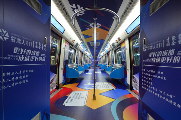專列以“才聚蓉城,國企當(dāng)先”為主題,選用漸變藍(lán)為車廂主色調(diào),寓意國企是人才發(fā)展的一片藍(lán)海。