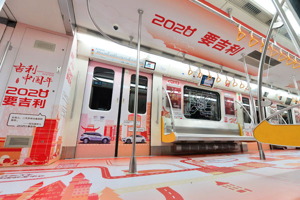 吉愿專列來了,你要的萬事大吉,我們鋪滿整個車廂。吉利打造的吉愿專列主題列車將"吉利中國年"傳遞至杭州和成都全城,在地鐵列車車廂內(nèi),6節(jié)車身上展現(xiàn)了從更多不同群體角度用多種不同的話語表達"要吉利"的愿望“意景”組成"2020要吉利"文化主題列車。