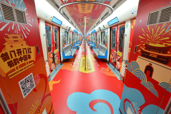 地鐵劍門關(guān)號(hào)主題列車車廂照片賞析