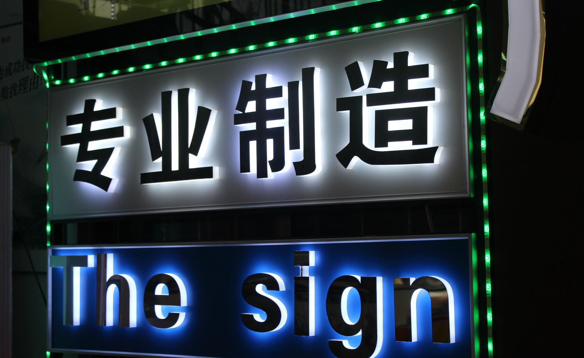 背面發(fā)光的文字是國際戶外廣告的潮流。光線柔和醒目,穿透力強(qiáng)。有多種顏色可供選擇。日夜效果都很好。具有形式多樣、保質(zhì)期長、節(jié)能等特點(diǎn)。當(dāng)燈亮?xí)r有立體視覺的感覺。廣泛應(yīng)用于室內(nèi)門、企業(yè)形象墻、商場(chǎng)、柜臺(tái)展廳等場(chǎng)所。