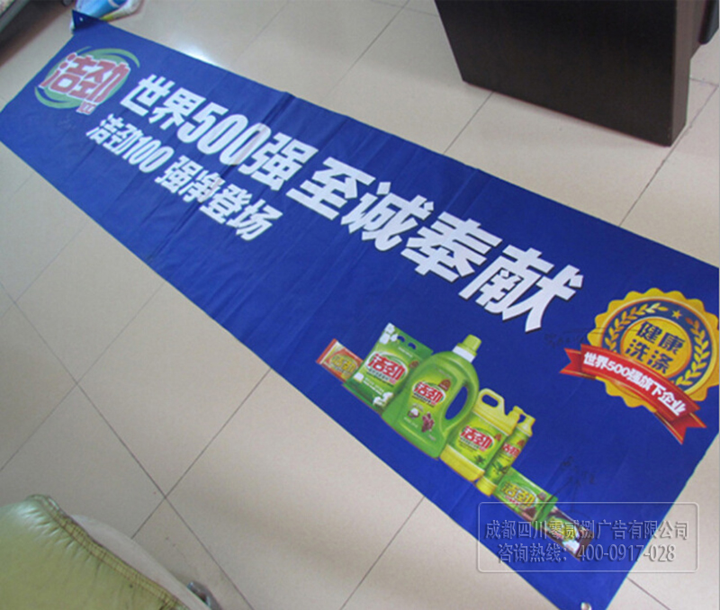 還有就是橫幅,橫幅使用牛津布材料制作,這種材料手感柔軟、垂直性好、防水性能良好。而且牛津布經(jīng)過UV噴繪顏色新穎、不易褪色,深受顧客青睞。