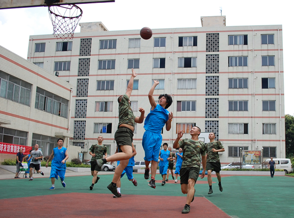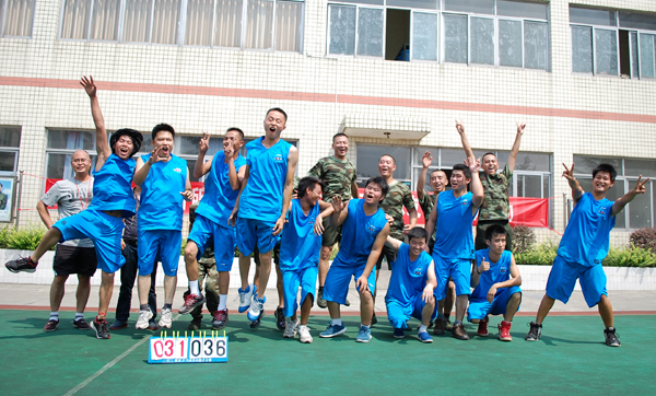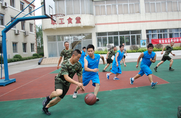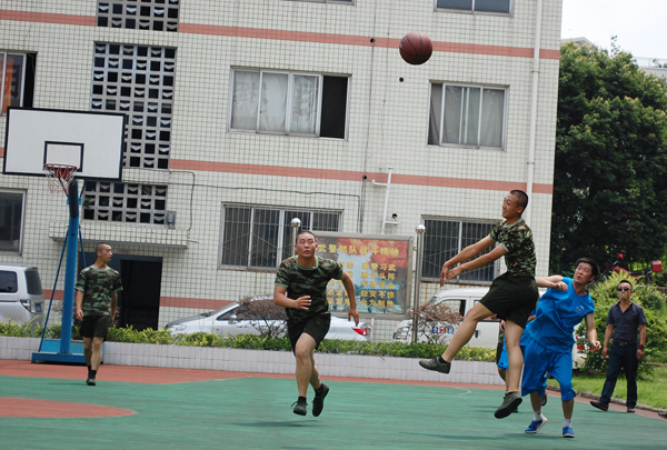 我們邀請(qǐng)了國(guó)家2級(jí)籃球裁判員當(dāng)我們今天友誼賽的裁判,比賽開(kāi)始了,雙流縣武警中隊(duì)看守所支隊(duì)就領(lǐng)先進(jìn)了二分球。球員們?cè)趨⒓颖荣惖臅r(shí)候即緊張又放松,所以他們?cè)趥髑?、運(yùn)球、上欄上尤其特別配合,應(yīng)該說(shuō)這次比賽籃球隊(duì)員們都發(fā)揮的很好。在球場(chǎng)上都找到了感覺(jué),配合特別得力,籃球在他們的手中像玩一個(gè)乒乓球一樣得心應(yīng)手。只見(jiàn)球在空中從這里傳到那里,哈哈…….又進(jìn)球了。我們以比賽第一,友誼第二結(jié)束了這一場(chǎng)比賽。