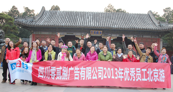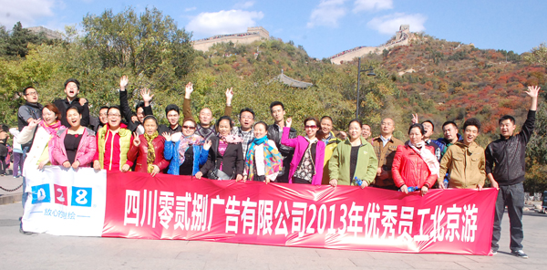 2012年5月到2013年5月四川028廣告公司優(yōu)秀員工到北京旅游,我們從2013年9月19日早上7點出發(fā),坐上了從成都飛往北京的飛機。到了北京我們第一時間來到了故宮,聽導(dǎo)游詳細的講解它的歷史文化。之后的幾天我們分別來到了八達嶺長城、頤和園、香山、天安門廣場看升旗儀式、中國歷史博物館、毛主席紀(jì)念堂、還有到天津看周總理紀(jì)念館等。