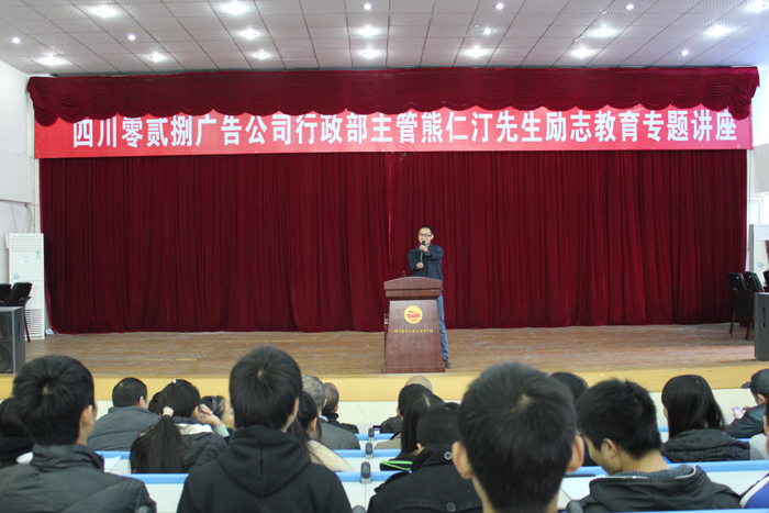 成都廣告公司行政部主管熊仁汀為該校計算機專業(yè)部2012級近500師生作了關(guān)于就業(yè)從業(yè)指導與勵志教育的專題講座。