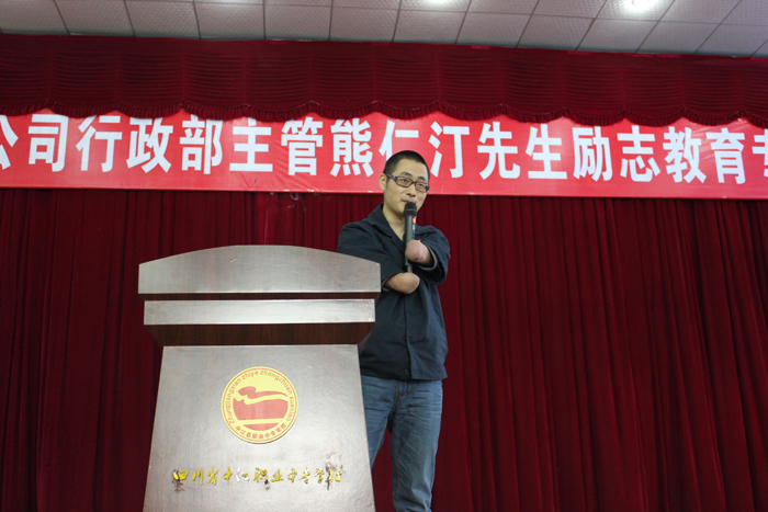 據(jù)了解,熊仁汀9歲時因遭遇電擊失去了雙臂,靠著堅韌的毅力和自立自強的決心戰(zhàn)勝重重困難,堅強地面對生活和學習,2003年以高出當年本科錄取線51分的好成績考入西南石油大學,大學畢業(yè)后經(jīng)歷了兩年艱苦的自主創(chuàng)業(yè)后于2009年底進入四川零貳捌廣告有限公司工作,從最基層的一名庫管做起,一步步做到公司的行政部主管并成為了公司的股東之一。