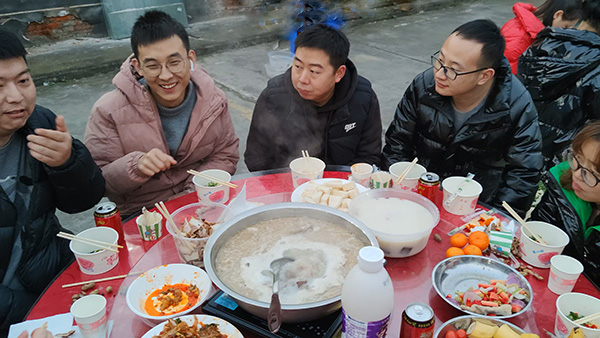 四川零貳捌廣告公司員工們坐在一起吃羊肉湯