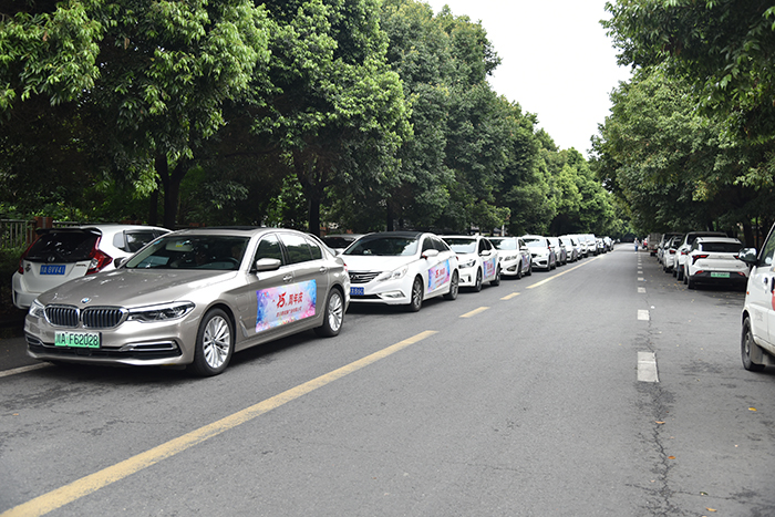 早上,貼著“四川零貳捌廣告有限公司十五周年慶”字樣的車輛整裝待發(fā),一條龍的車輛遠(yuǎn)遠(yuǎn)看上去尤為的壯觀,周年慶典也在這里拉開了序幕。