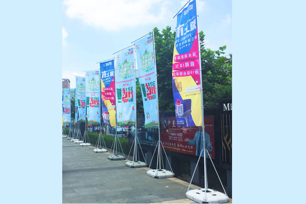 注水旗加工制作 注水旗顧名思義就是可以注水的。一般3米注水旗底座可注水12斤左右。注水旗是現(xiàn)在廣告旗的一種,用于戶外廣告或者展會現(xiàn)場。注水旗美觀耐用,使用方便,是極佳的廣告展覽器材。適用于商場、酒店、4S店、展館等門店廣告宣傳。