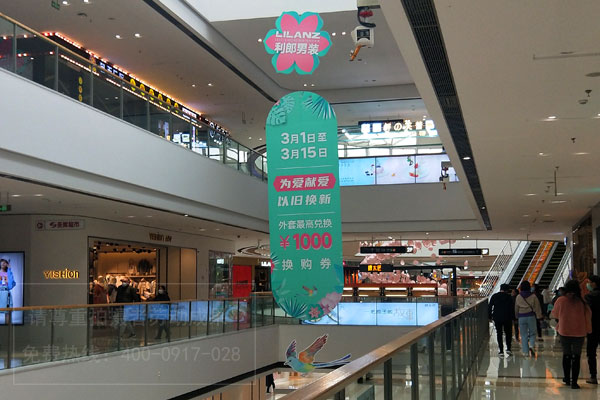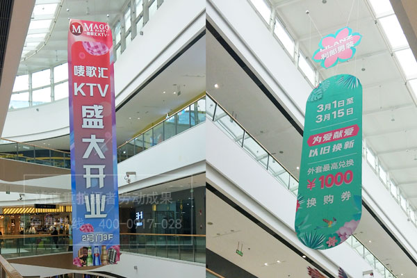 吊旗是商場或者超市中使用的一種宣傳方式,類似海報,有比較小的小旗幟,懸掛在商場的過道或者物品上,色彩艷麗的小旗子,也有懸掛在商場的大畫面的吊旗,一般一個畫面都是從商場的頂部直接垂到最下面的樓層。通常吊旗都是雙面看的,畫面顏色豐富,內(nèi)容新穎,安裝的位置也足夠吸引消費(fèi)者的眼球,是一種非常不錯的宣傳方式。那吊旗制作一般采用什么材質(zhì)和工藝呢?下面我們零貳捌成都廣告制作公司就來給大家介紹一下:編輯:2015-06-30 被訪問:4636次 零貳捌網(wǎng)絡(luò)部