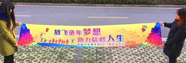 成都彩色條幅制作廠家 我們四川零貳捌成都廣告公司新進(jìn)購了一臺(tái)熱升華機(jī)器,這臺(tái)機(jī)器可以說是熱轉(zhuǎn)印機(jī)器的加強(qiáng)升級(jí)版,不只是可以制作單色條幅還可以制作彩色條幅了,除了條幅還可制作注水旗,刀旗,迎風(fēng)旗等,畫面更加的清晰,長時(shí)間使用不變色,那下面我們就來給大家講一講展會(huì)慶典常用的條幅廣告: