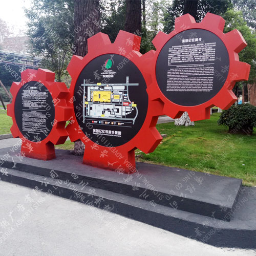 這次我們所制作的東郊記憶景區(qū)導(dǎo)向標(biāo)識牌(風(fēng)向標(biāo))就充分的展現(xiàn)了這個特點,根據(jù)景區(qū)濃厚的工業(yè)氣息以齒輪為原型進行創(chuàng)意設(shè)計,充分展現(xiàn)東郊記憶園區(qū)特色。