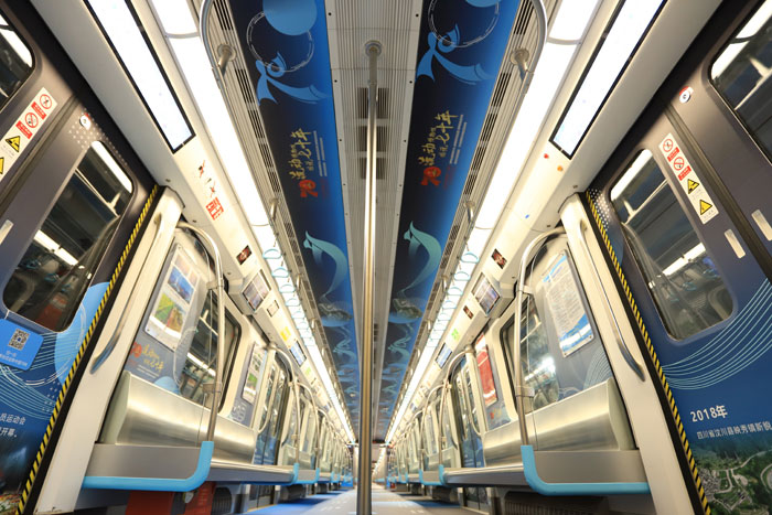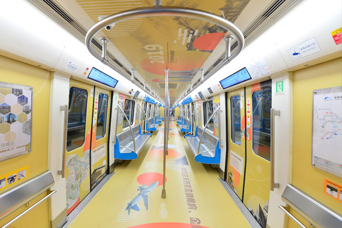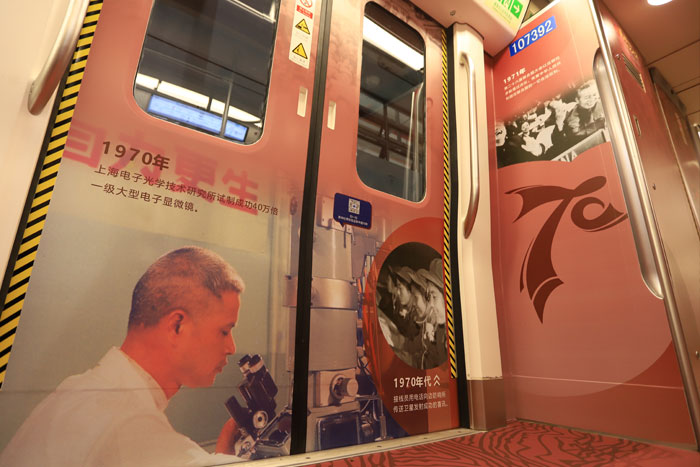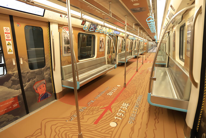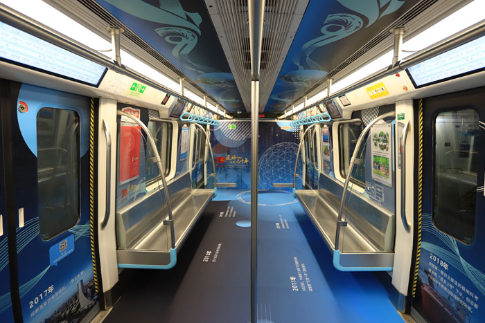 新中國成立70周年成都地鐵主題列車車廂內(nèi)車身貼畫面制作安裝
