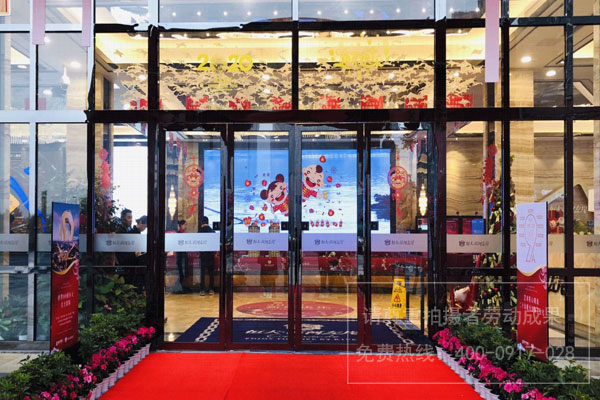 恒大濱河左岸樓盤營銷中心入口玻璃門春節(jié)裝飾貼紙制作安裝