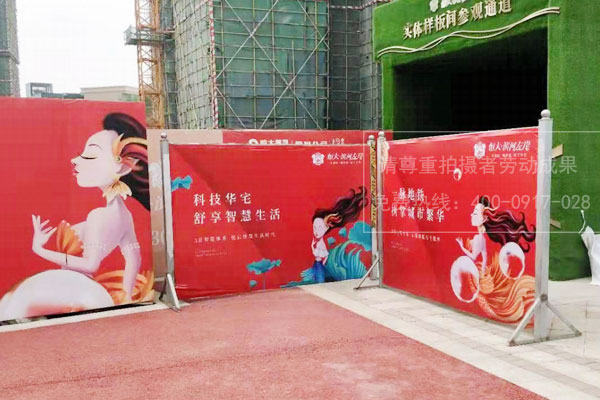 恒大濱河左岸房地產(chǎn)施工路欄廣告畫面噴繪制作安裝