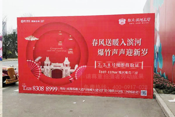 “春風送暖如濱河,爆竹聲聲迎新”恒大地產(chǎn)樓盤戶外桁架廣告制作安裝