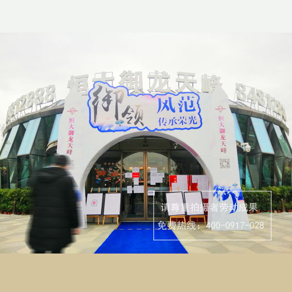 恒大御龍?zhí)旆宓禺a(chǎn)樓盤銷售中心內(nèi)氛圍營造KT板拱門制作安裝