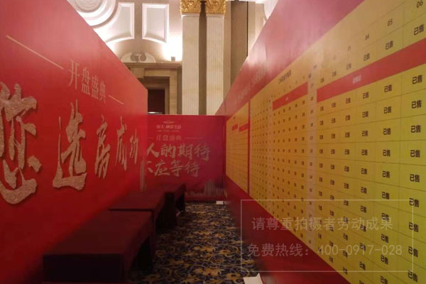 成都地產(chǎn)樓盤項(xiàng)目開盤廣告物料制作安裝布置首選四川零貳捌廣告公司,開盤盛典廣告物料布置涉及客戶簽到區(qū)、客戶等候區(qū)、算價(jià)區(qū)、房源表、房源公示欄等桁架搭建畫面噴繪制作安裝。實(shí)際現(xiàn)場照片就跟著028現(xiàn)場施工人員的視覺一起來看看吧。