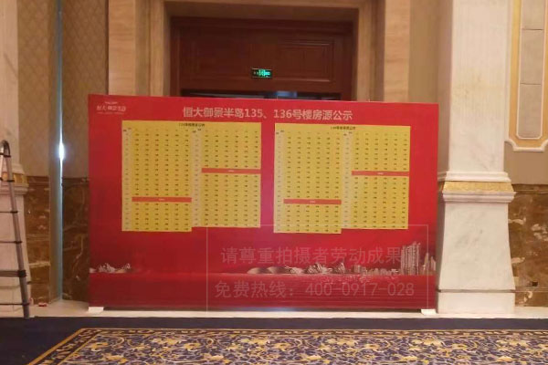 恒大地產(chǎn)御景半島開盤盛典房源公示欄看板桁架搭建噴繪畫面制作安裝