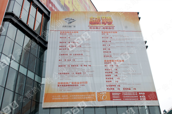 網(wǎng)格布噴繪應(yīng)用范圍:在商廈的外墻,建設(shè)中的高樓的墻面、大型展示會(huì)的展臺(tái)搭建等-成都網(wǎng)格布噴繪就找028廣告。