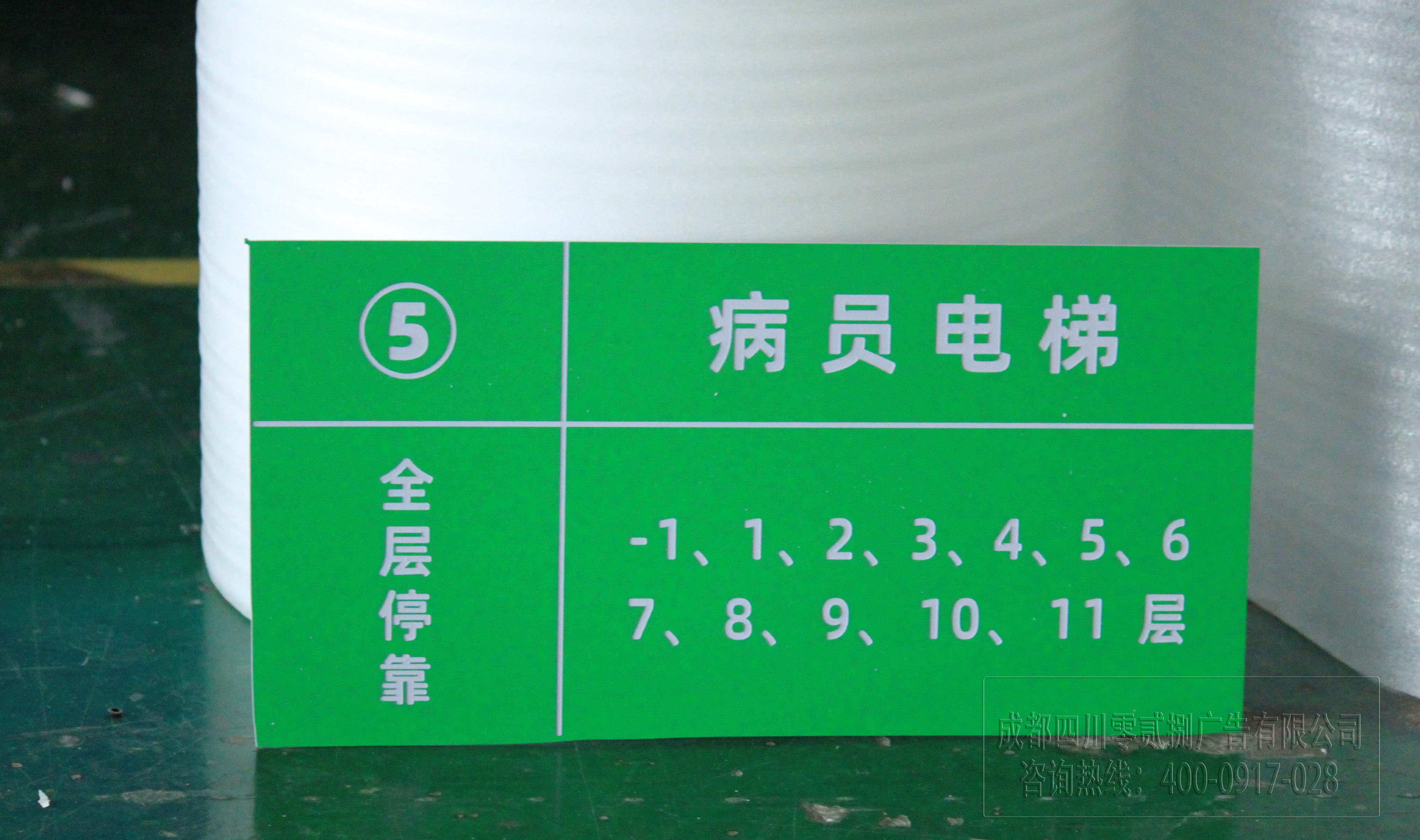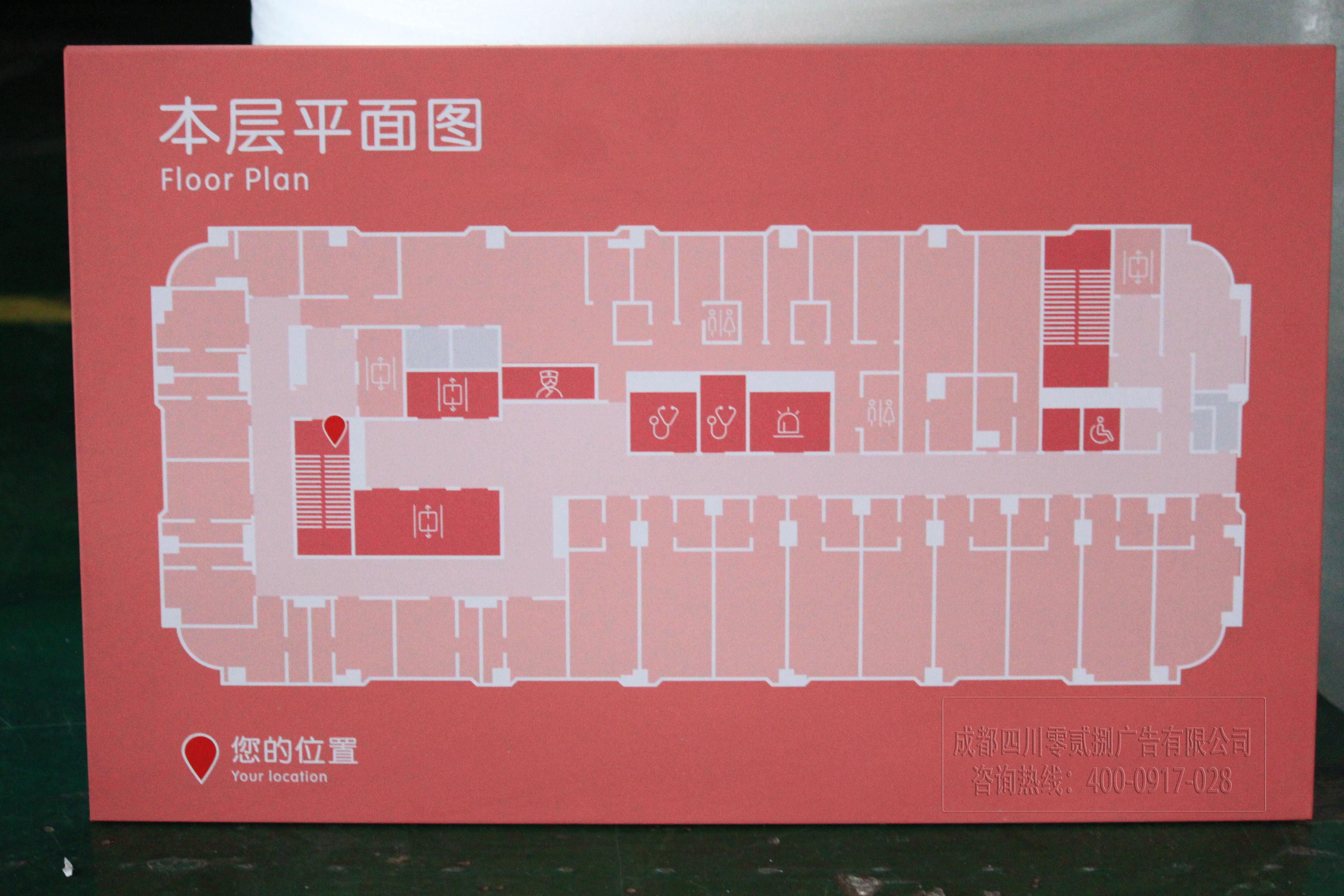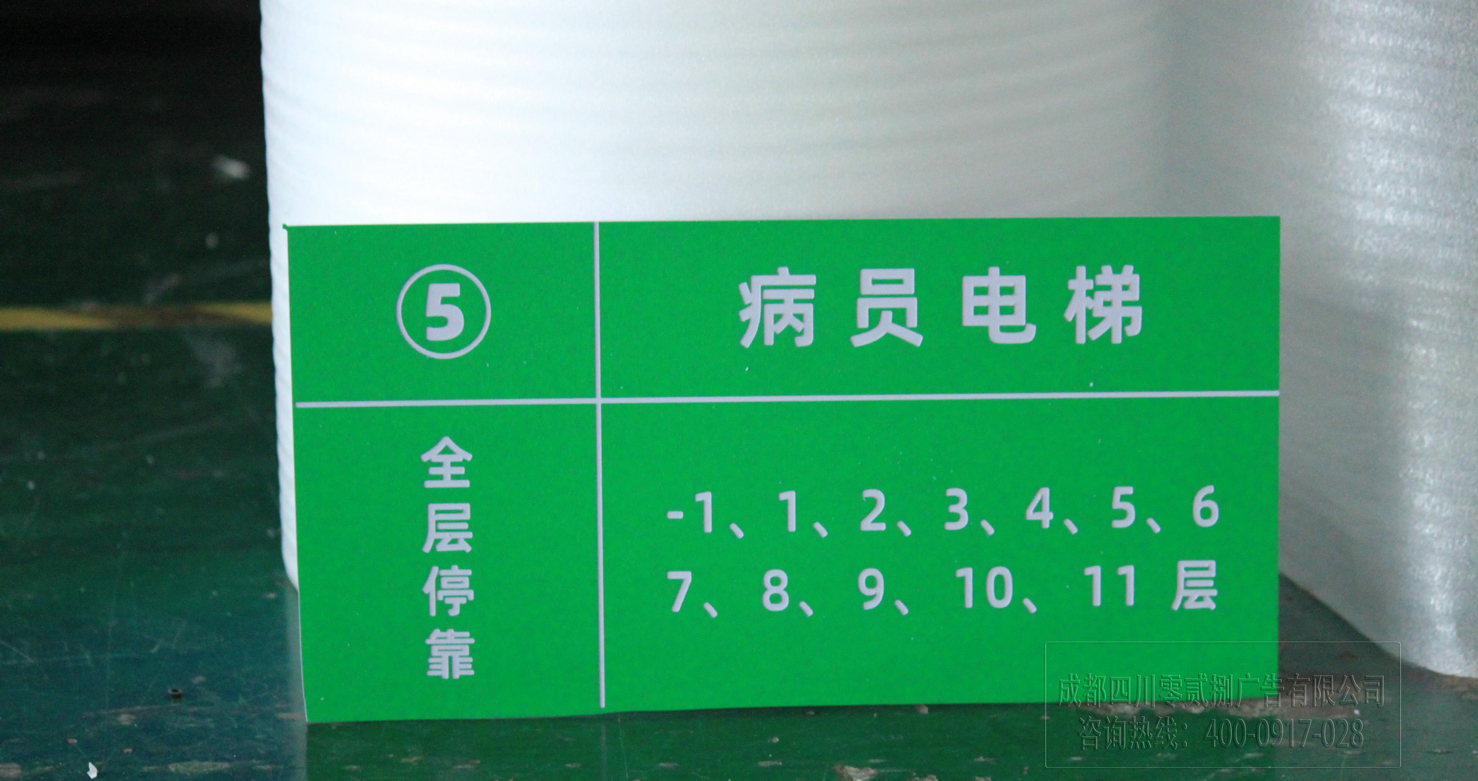 醫(yī)院電梯提示牌就是由噴繪雙色板制作而成,固定不會影響美觀。圖片為028廣告公司加工而成,需要做大型指示牌、樓層套組指示牌、醫(yī)院、學院等等指示牌都可制作!