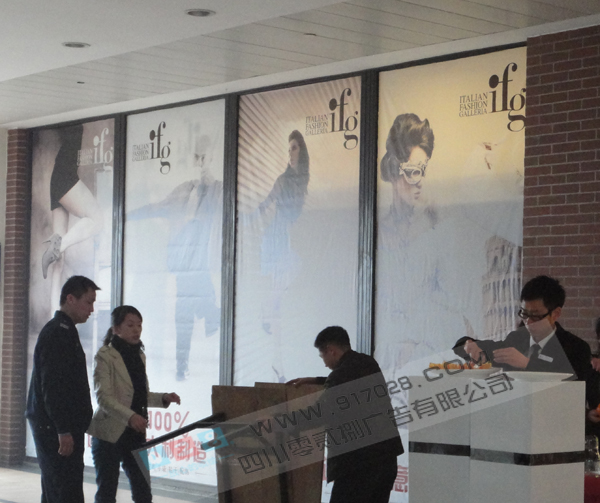 旗幟布:本公司為某品牌制作的旗幟布畫面,具有防水、防紫外線、畫面精致美觀的優(yōu)點,尤其具有紡織品的特殊質地,極為典雅高貴,特別適用于精品百貨、化妝品專柜的燈箱等高品質宣傳領域。