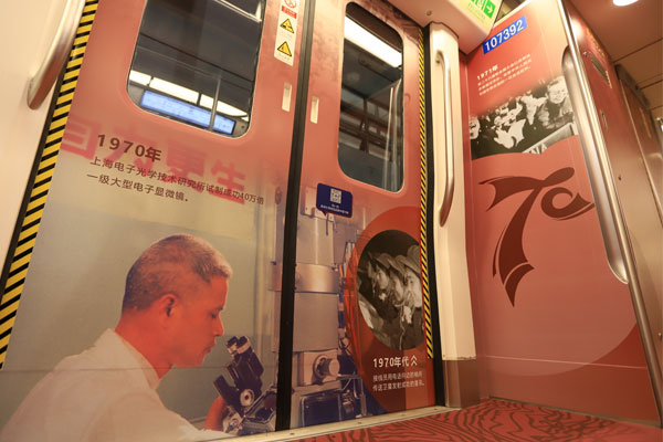 這趟主題列車由成都軌道交通集團(tuán)、四川省建川博物館等單位共同打造。主辦方精心收集、挑選了1949-2019年的300多張重要?dú)v史照片和文物復(fù)印件,通過時(shí)間長廊的設(shè)計(jì),將新中國成立70年來的奮斗歷程和老百姓衣食住行的變化逐年呈現(xiàn)。為方便乘客更多地了解和分享新中國成立70年來的巨大變化,主題列車上設(shè)置了多處二維碼,掃碼即可進(jìn)入更多新聞專題,把“流動(dòng)博物館”延伸到“網(wǎng)絡(luò)博物館”。