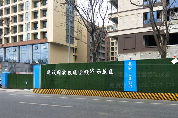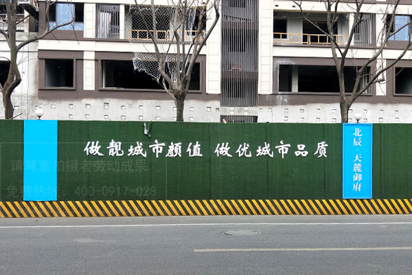 房地產(chǎn)項目圍墻圍擋廣告制作多是采用假草坪綠植來進行制作,這種用植被組成的工地圍擋也稱為綠籬式圍擋,是以墻體立體綠化的方式,對工地進行美化、綠化、亮化處理,彌補了施工圍擋占用公共綠地的遺憾。