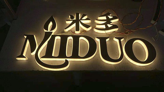 不銹鋼發(fā)光字。不銹鋼發(fā)光字可以做成拉絲的或是鏡面的一個外形。