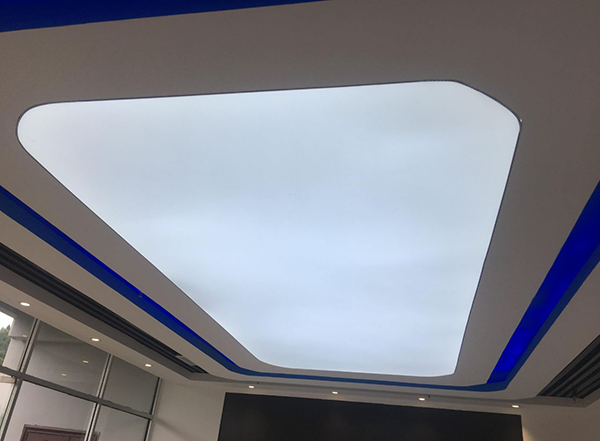 軟膜天花適用于任何場所,例如酒店大堂的天花吊頂,辦公室場所,洗浴中心,會所和售樓處,餐廳和美容院,會議廳,展示廳,以及我們的家庭吊頂安裝等等。