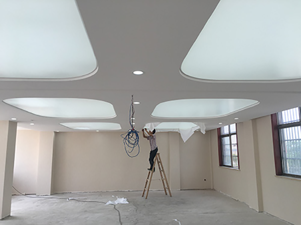 2、安裝軟膜天花,安裝軟膜天花的時候,要先用專用的加熱器充分的加熱均勻,然后再依次插入安裝就好了。