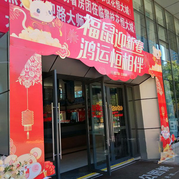 在商鋪等店面前,如果是玻璃店面的話,我們可以運用靜電貼來制作一些既可以又喜慶的東西張貼在玻璃棉上,來烘托出節(jié)日的到來。如果是一些房地產(chǎn)銷售中心的話,我們可以適應(yīng)一些KT板制作一些門板安裝在店面外,比如拱門等等。亦或者在一些公共場合,比如公園等地的草坪上安裝花燈字體等等。