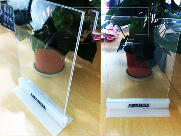 那么,臺卡桌牌是什么材質(zhì)做的呢?一般制作臺卡桌牌的材質(zhì)是有機玻璃或者是亞克力板材質(zhì)。有機玻璃和亞克力板材質(zhì)都有透明型的,所以會比較有利于透明度,也比較受客戶的歡迎,亞克力材質(zhì)能夠隨意彎折,制造出多種形狀,也可以制作雙層,以便中間插縫處插入圖紙等。