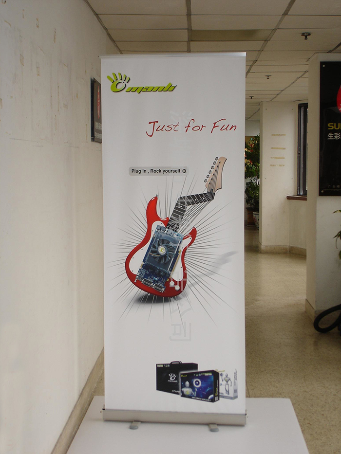而使用鋁合金制作的易拉寶,它的柔韌性是比較好的,在抗風(fēng)性上也很不錯(cuò),而且運(yùn)輸輕便,用作于長期展示是很不錯(cuò)的一個(gè)選擇。