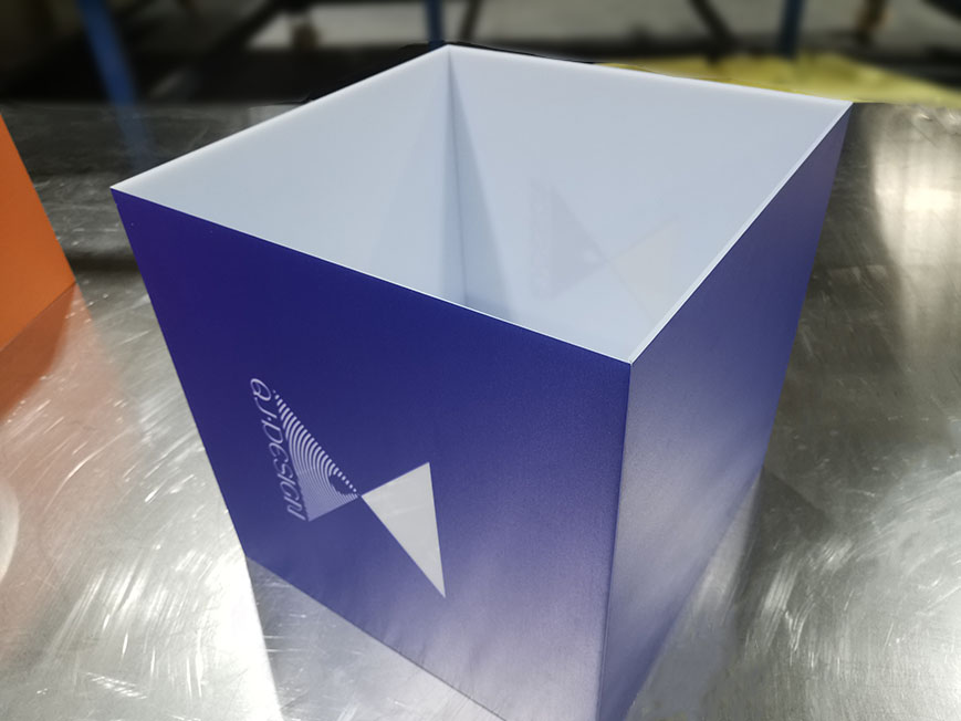 亞克力盒子的安裝一般會在出廠前完成,一般都是手工粘貼制作,使用的是專用膠水,粘性強。首先會根據客戶選定的樣式制作好亞克力盒子板塊,雕刻圖式,上色,再把板材拼接起來。