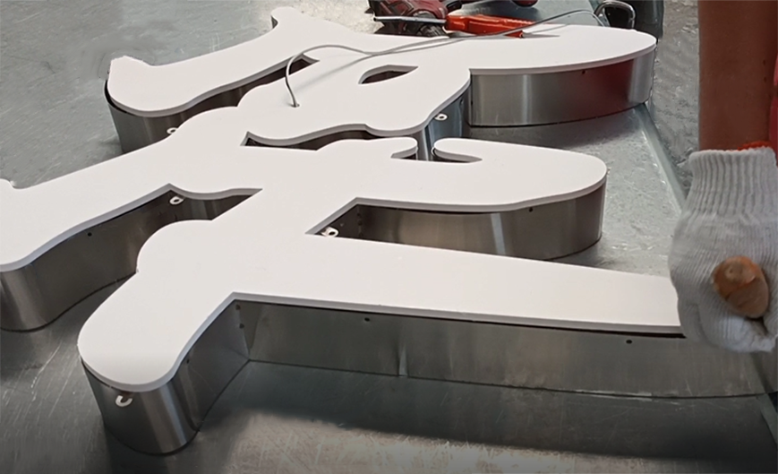 這種方法先把吸塑字拆開,分為底板和面板兩個(gè)部分,然后先安裝號(hào)底板部分,再把LED燈線安裝號(hào)在內(nèi)部,隨后在把吸塑字的面板安裝上,就可以了。